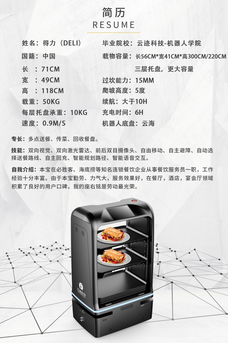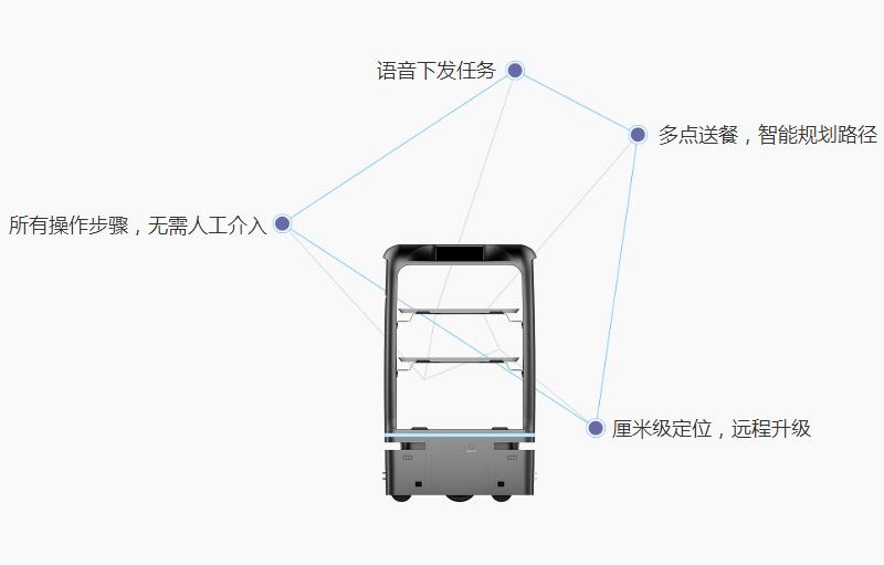 可以實現將菜肴從廚房出餐口送到客人餐桌的智能化服務,減少傳菜員的重復勞動。