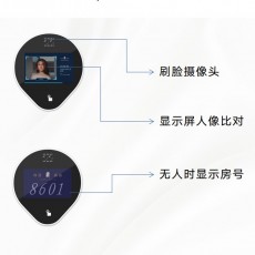 智慧酒店解決方案——刷臉門控系統為您提供刷臉攝像頭、顯示屏人像比對、無人時顯示房號,實現刷臉自動開門入住,前臺登記無需房卡;展示對應門牌號碼,客戶員工一目了然;房間狀態語音提示,背景色對應屋內狀態,方便員工清理房間;真人語音,提示引導。